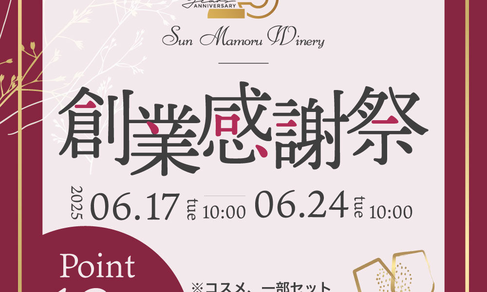 6/17~6/24 10:00の期間中、サンマモルワイナリー創業感謝祭として、サンマモルワイナリー公式通販サイトにて、ポイント10倍キャンペーンを行います!!